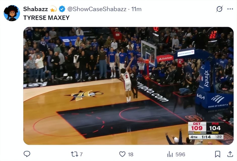 北京时间11月10日,费城108-111惜败活塞,这场比赛是拉锯战,上半场打完是费城领先,第三节打完活塞反超,末节两队鏖战至最后一刻,坎宁安命中准绝杀,马克西三分绝平没中。