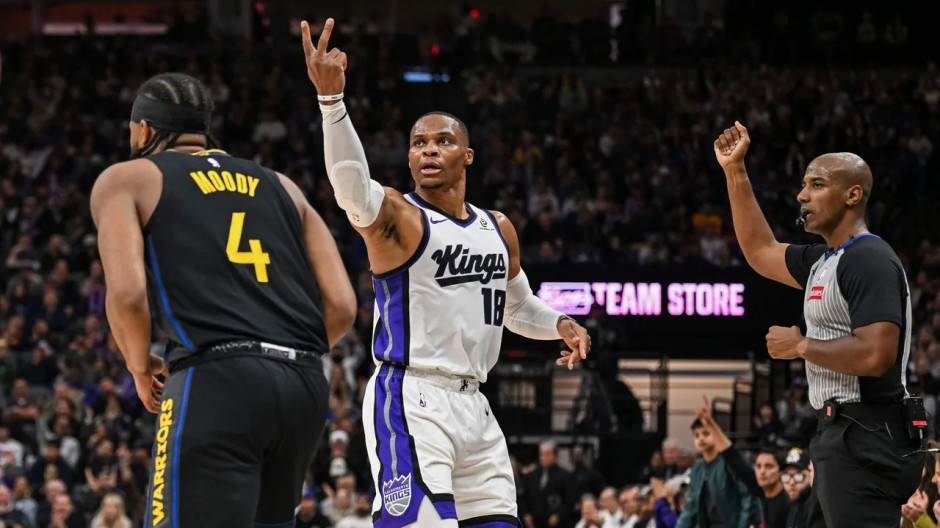 国王首发阵容:施罗德、威少、德罗赞、阿丘瓦、小萨博尼斯。