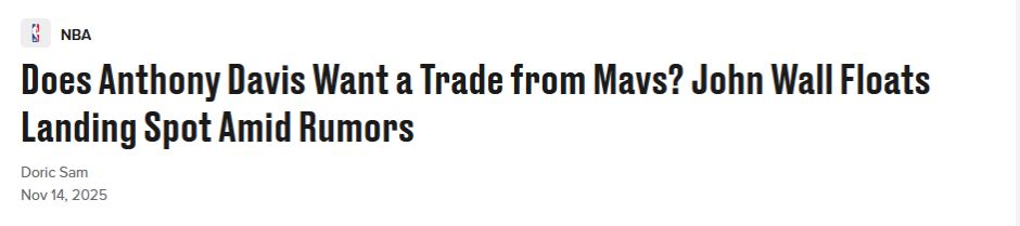 北京时间11月14日,在达拉斯独行侠队本周解雇总经理尼科-哈里森后,安东尼-戴维斯在该队的未来仍存疑。