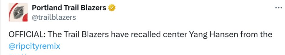 北京时间11月18日,开拓者官方宣布从G联赛下属的混音队召回杨瀚森。重回开拓者的瀚森,有望随队在明日出战太阳。此次下放,瀚森在混音队打了两场比赛,数据分别是8分13篮板4助攻1抢断1盖帽、21分9篮板3助攻1抢断3盖帽,场均14.5分11篮板3.5助攻1抢断2盖帽。