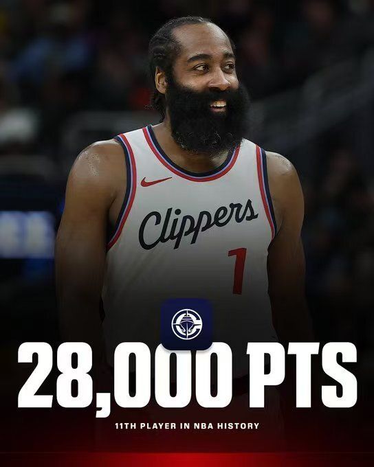 北京时间11月18日,在快船客场对阵76人的比赛,哈登借助首节得到17分,他成功达成生涯常规赛28000分里程碑。哈登成为现役仅次于詹姆斯与杜兰特之后第3人,也是历史第11位达成28000分的球员,以及历史首位达成至少28000分+3000三分的球员。