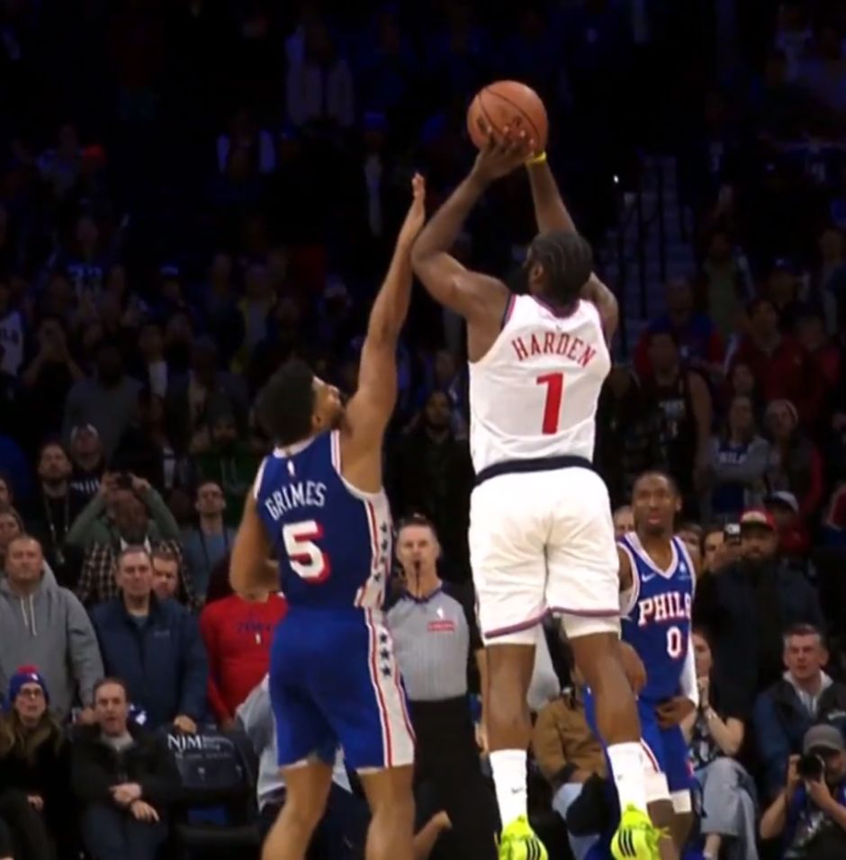 哈登的确丢了两个三分绝杀,但第一个三分绝杀出手从动态摄影师的回放来看,格兰姆斯是明显犯规,这两个点直接是击中哈登的手肘,根本不是手掌的位置。