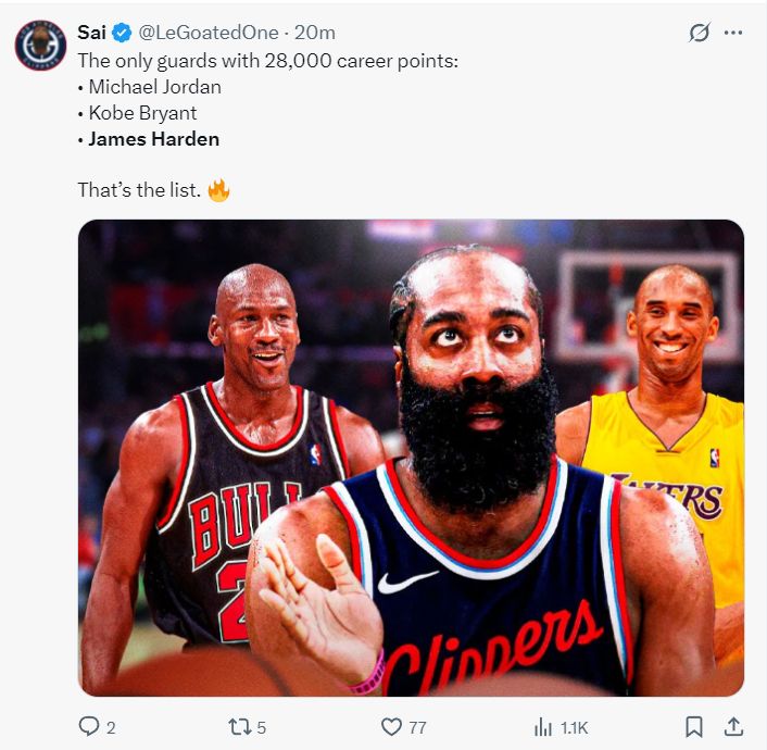 北京时间11月18日,快船108-100惜败费城,这场比赛也是哈登28000分里程碑,他比肩乔丹、科比成为历史第三位拿到2.8W分的得分后卫,换言之登哥吞下了里程悲的夜晚。