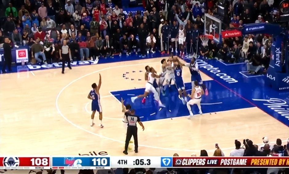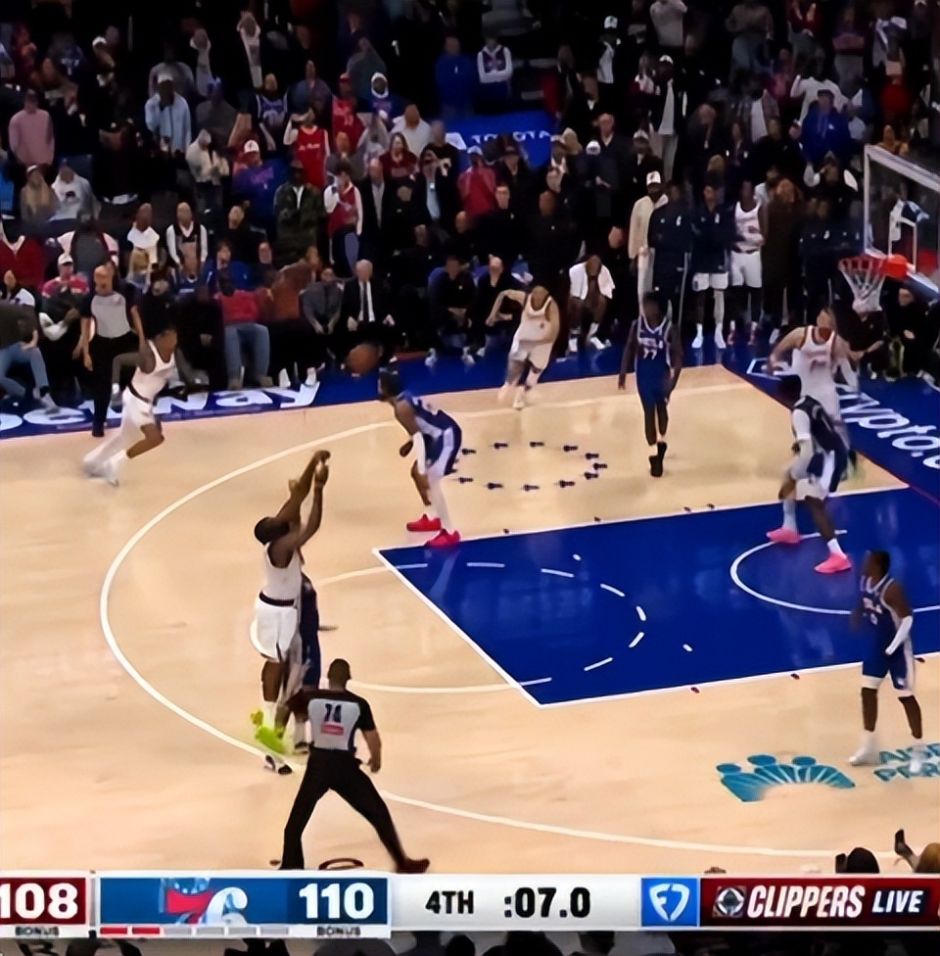 大家可以看到哈登出手这第一个三分绝杀后,他在空中已经失去平衡,他落地后气的跳脚,但裁判直接无视,哈登只能冲过去拼下前场篮板继续投第二次三分,结果没有站稳还是没进。