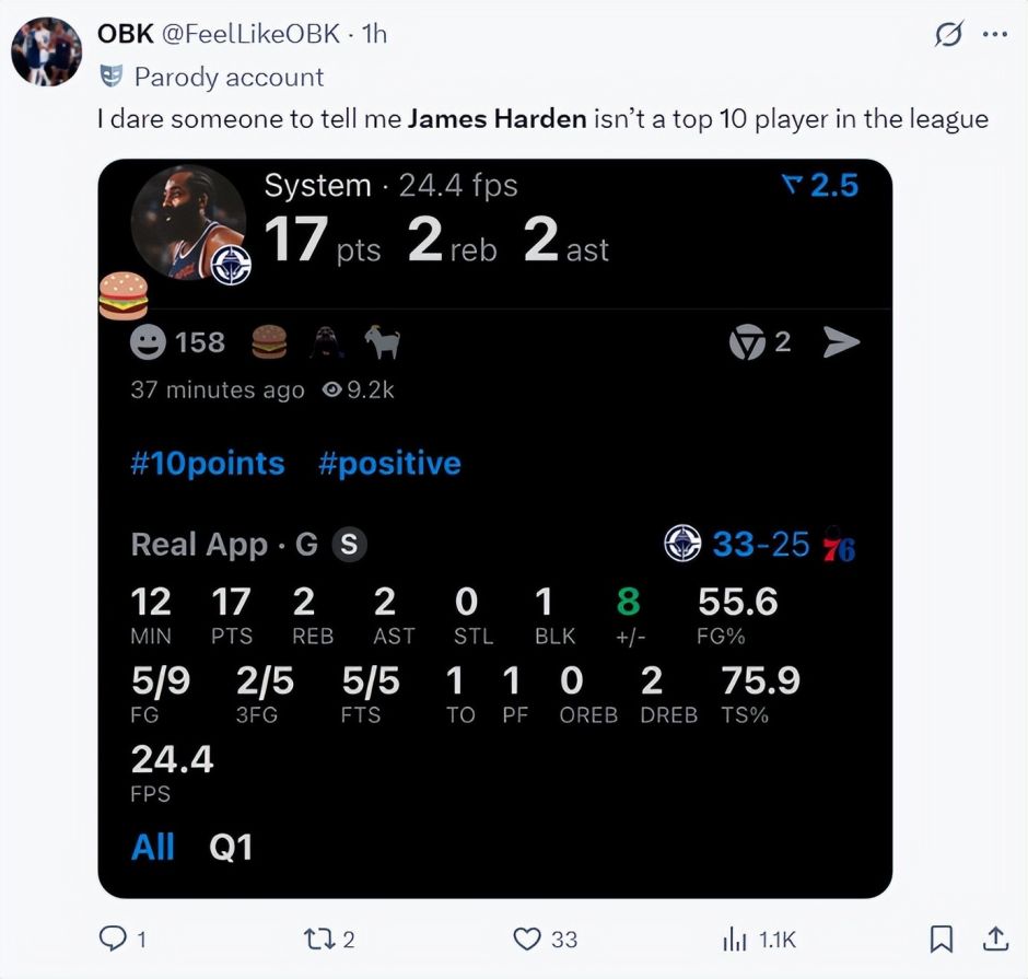首节的哈登12分钟,9中5,三分5中2,拿到17分2篮板2助攻1盖帽,他延续了过去四场比赛的高光表现。