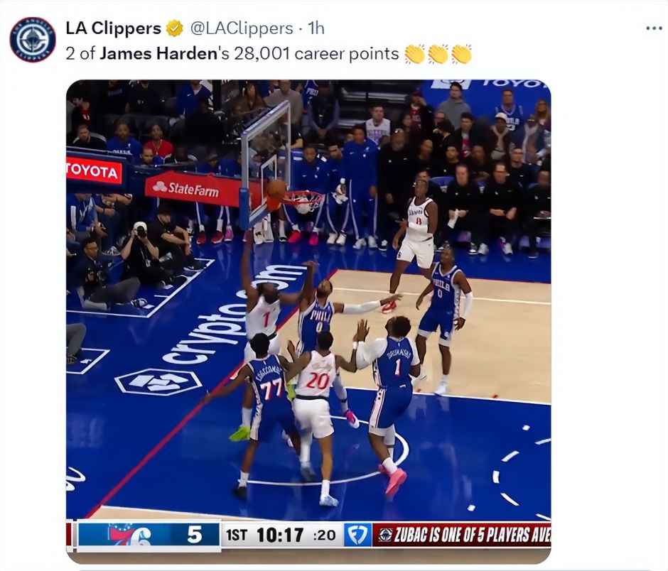 北京时间11月18日,快船背靠背第二场,詹姆斯-哈登迎来个人生涯28000分大关,他成为历史上第11位完成28000+的球员,只可惜这支快船还是输球了,哈登吞下了里程悲,除了哈登之外一个稳定得分点都没有,下半场哈登16中2还丢了两个三分绝杀。