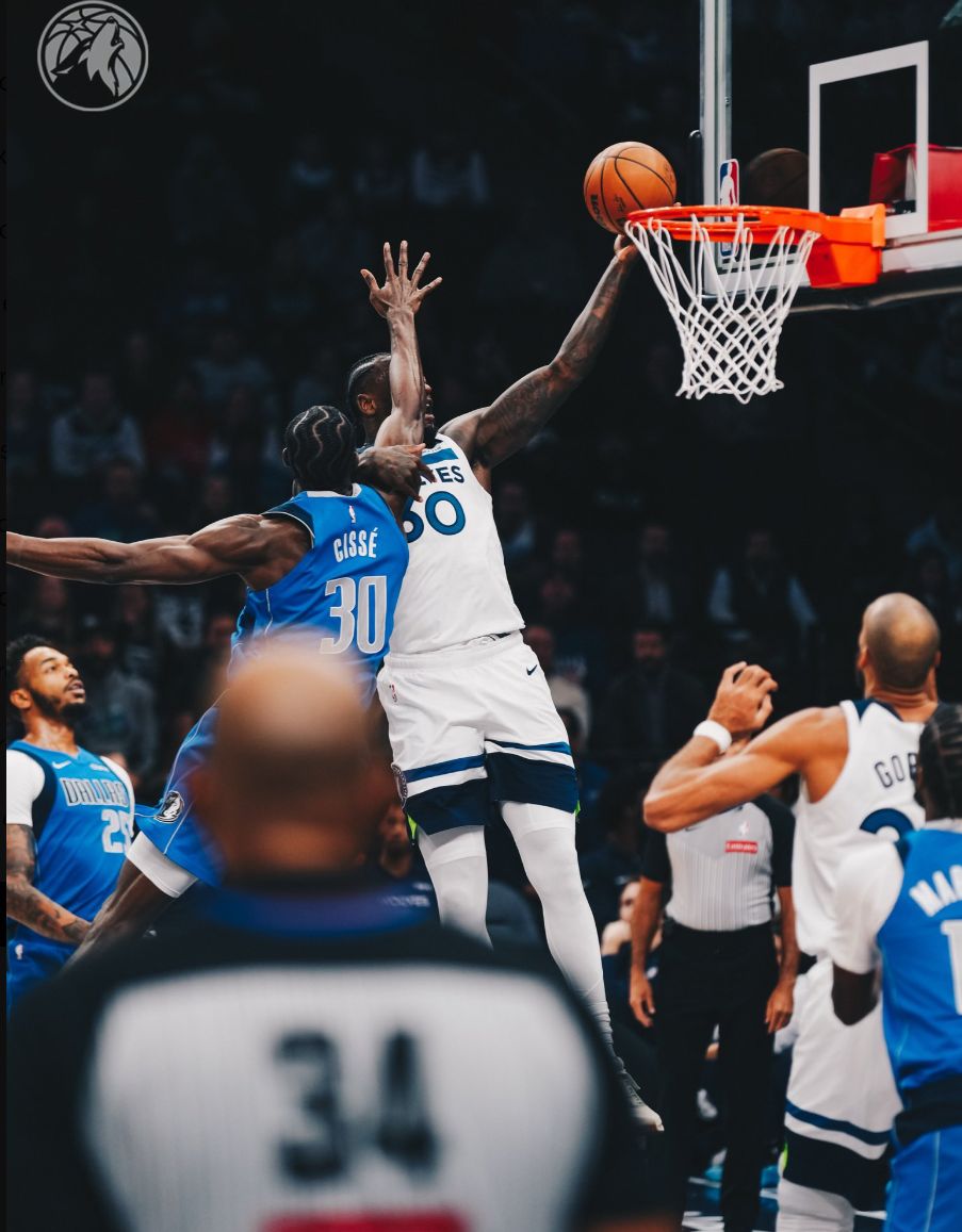 这场比赛里德登场就连续得分帮助森林狼拉开分差,全场比赛拿到22分12篮板。