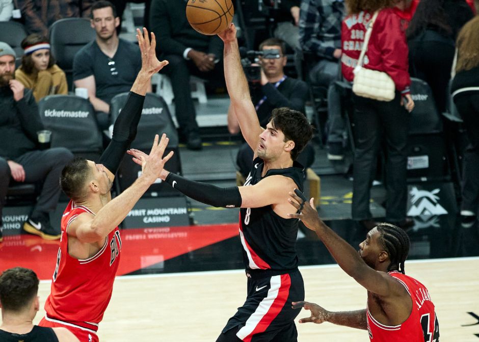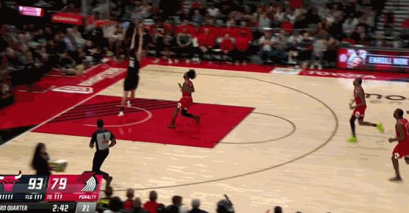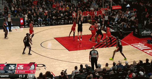 易边再战,奥科罗连中三分,克林根扣篮,格兰特连得5分。武切维奇、吉迪连中三分,公牛领先9分。格兰特中投得分,奥科罗上篮得手。斯普利特不满判罚,领到主教练生涯的第一次技犯。克林根空接扣篮,吉迪、奥科罗连中三分,公牛已经领先16分。杨瀚森重新登场,篮下扣篮被对手追帽,怀特三分命中,库克扣篮,怀特上篮得分。三节战罢,公牛98-82领先开拓者。