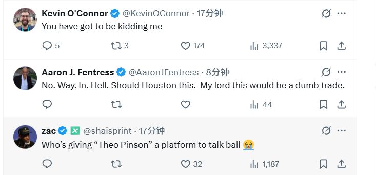开拓者队记芬特雷斯写道:“休斯顿绝对绝对不该这么做!我的天,这交易方案简直愚蠢至极!”