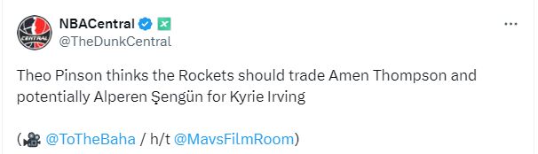 北京时间11月21日,独行侠旧将平森在播客节目上谈到了火箭和独行侠的话题。他认为火箭应该用阿门-汤普森和申京去换独行侠的欧文。这一交易方案引起媒体人热议,名记吐槽愚蠢至极。