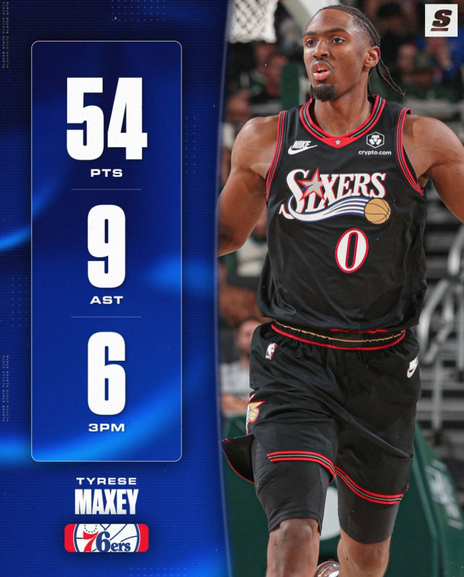 8.马克西拿到54分成为本赛季联盟第6位50+先生;