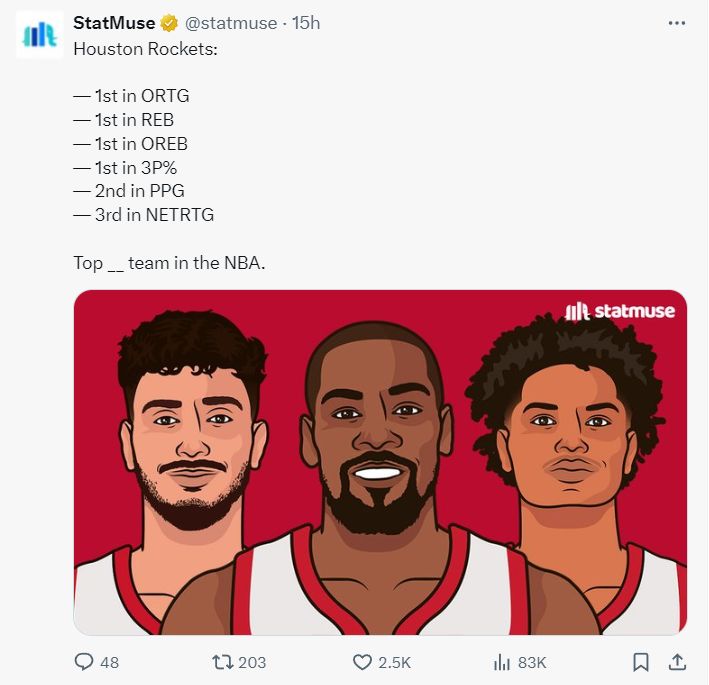 杜兰特的加盟与申京的进化让这支火箭腾飞, 进攻效率值联盟第1;