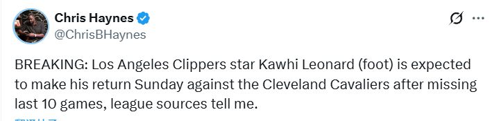 北京时间11月23日,据名记Chris Haynes报道,快船队前锋科怀-莱昂纳德预计将在周一对阵克利夫兰骑士队的比赛中复出。