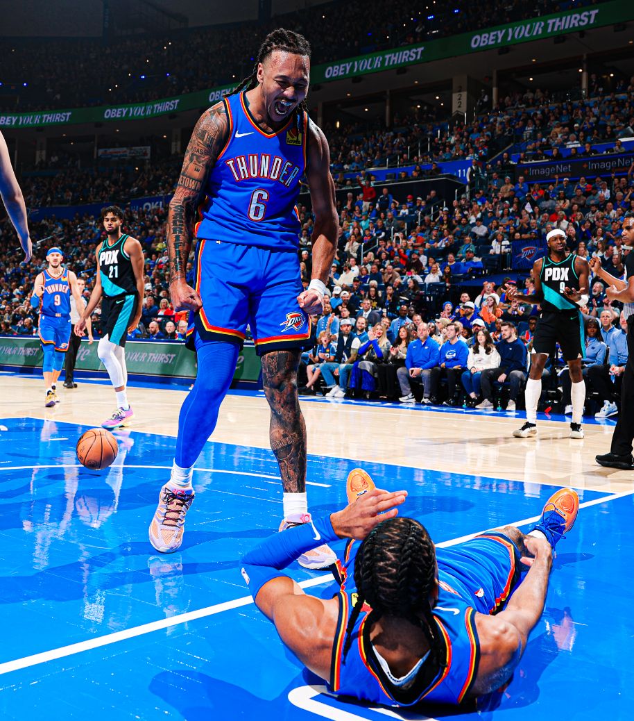 这场比赛克林根首节早早2次犯规,里斯的状态非常糟糕,这让杨瀚森首节获得了1分钟的登场时间,他有幸在场看到亚历山大的攻防表演,SGA首节打满12分钟,7中6+罚球5中5拿到17分1篮板1助攻2抢断,个人得分险些比开拓者全队还多。