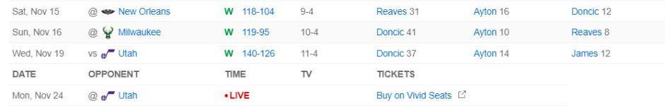 湖人:东契奇33分11篮板8助攻,里夫斯22分10篮板,八寸垒13分6篮板,詹姆斯17分8助攻6篮板。