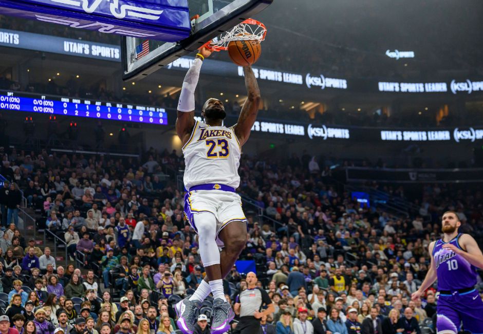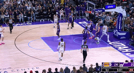 湖人正值一波四连胜,上一场比赛恰巧就是大胜的爵士,此役是两队本赛季的二番战。