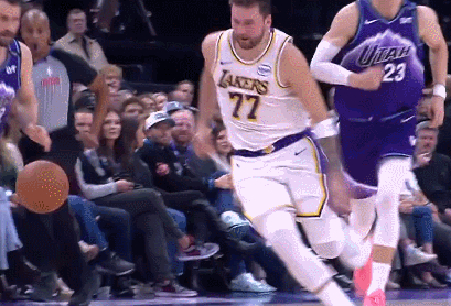 东契奇背运过人后面对双人包夹,降速滞空2+1打出,随后怒吼。