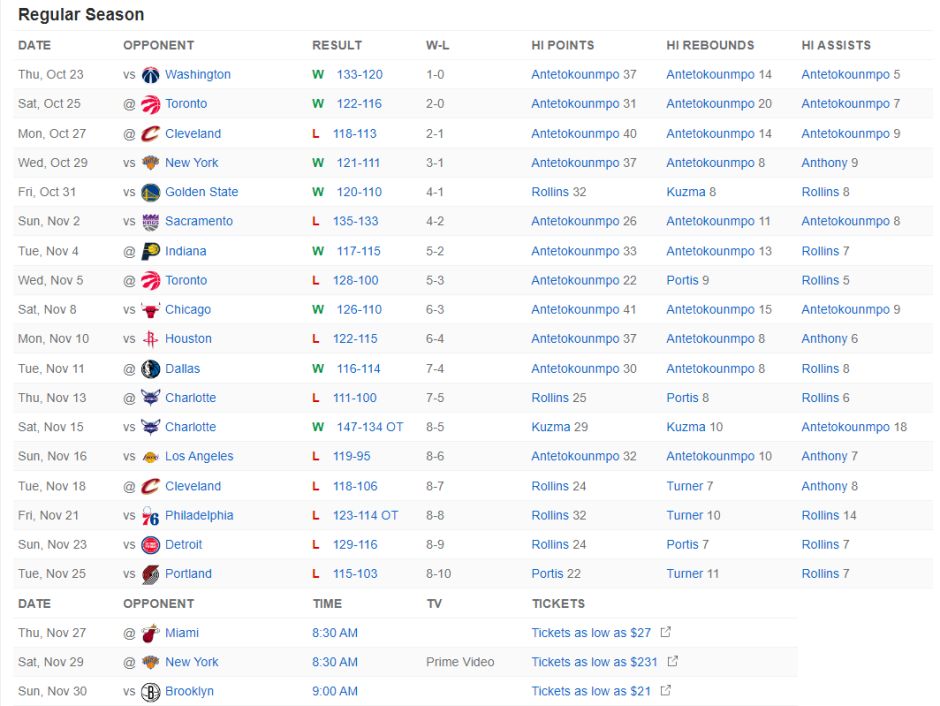 字母哥缺席后雄鹿是一波三连败,本赛季字母哥缺席的五场是1胜4负,这一波五连败分别不敌:湖人、骑士、费城、活塞、开拓者,没有扬尼斯的雄鹿的确太次。