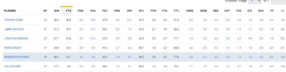 波杰真的有资格接班库里吗?生涯第三个赛季场均28.1分钟,拿到12.1分4.6篮板2.9助攻1.3抢断,命中率43.4%,三分命中率38.2%,库里新秀赛季就场均17.5分了,波杰能接班库里?