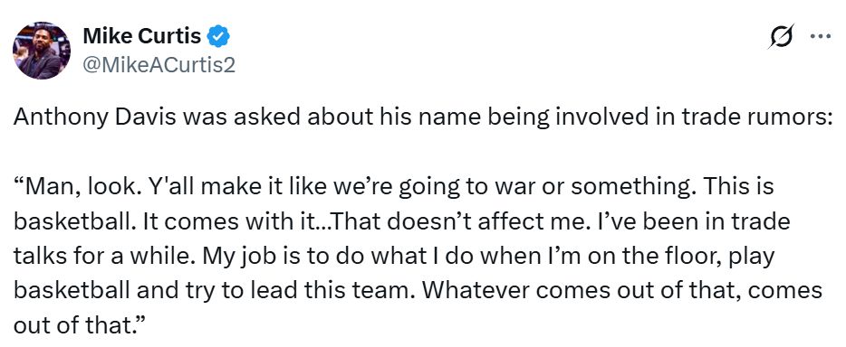 浓眉回应了相关猜测,表示自己的注意力全在篮球上。