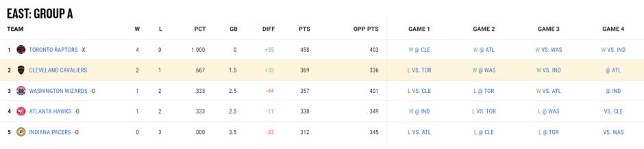 猛龙在东部的组,他们是以四连胜晋级杯赛八强,他们接连击败骑士、奇才、老鹰、步行者,四场比赛+55,猛龙目前已经冲到东部第二的位置。