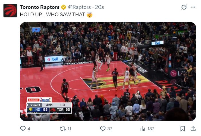 北京时间11月27日,NBA杯赛,猛龙VS步行者,这场比赛最后时刻两队95-95,猛龙核心布兰登-英格拉姆持球面对西亚卡姆,他的一个急停晃掉了西卡的身位,英格拉姆中投冷血命中,只给步行者留下0.6秒,准绝杀成功!猛龙97-95险胜步行者豪取9连胜,也是杯赛的4连胜。