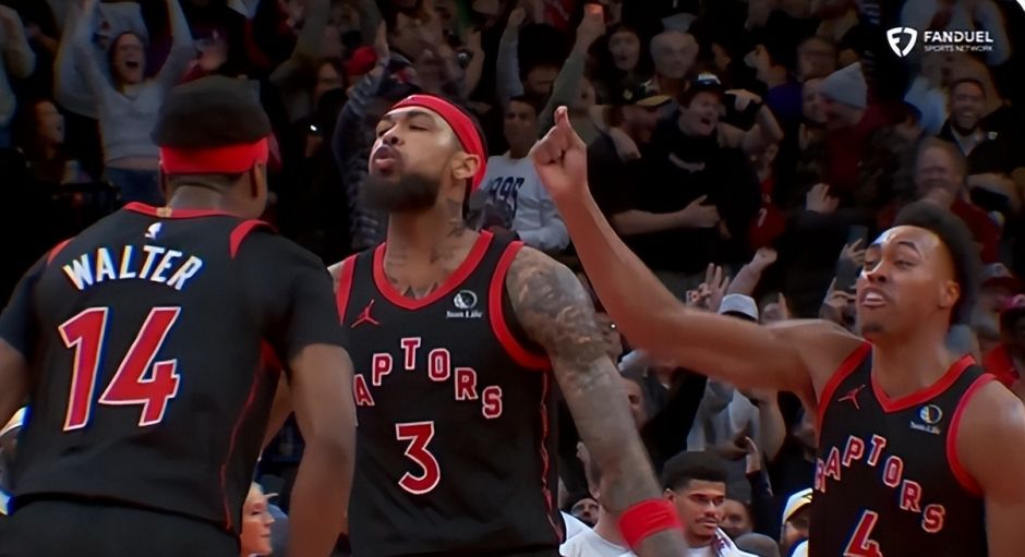 英格拉姆完成这个0.6秒中投准绝杀后表情那叫一个嚣张,斯科蒂-巴恩斯也也在一旁怒吼庆祝,这个准绝杀后猛龙已经豪取9连胜。