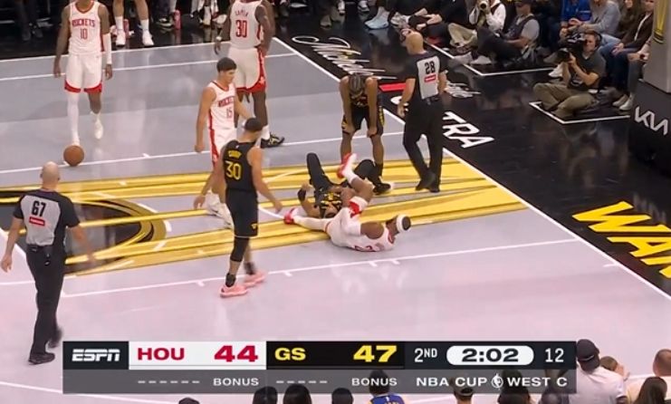 末节比赛,霍勒迪率先三分命中,戴维森连得4分与申京勾手命中,火箭一波9-0攻势反超7分。巴特勒上篮追分,泰特三分命中,勇士一波7-0攻势追到仅差1分,谢泼德中投命中,比赛进入暂停时间。勇士连得4分反超1分,霍勒迪三分回敬,理查德突破得分追到91-91。阿门撞倒库里被吹罚进攻犯规,但随后火箭挑战成功改吹库里阻挡犯规,阿门两罚全中取得领先,波杰姆斯基造犯规两罚不中,谢泼德中投得分,双方接连打铁。阿门极限空接得分,巴特勒上篮命中,申京中投维持6分优势。库里两罚全中,谢泼德被犯规两罚一中,库里一瘸一拐下场。勇士失误后犯规送史密斯两罚全中扩大7分优势,理查德上篮追分,申京两罚不中,穆迪三分追到仅差2分,火箭请求暂停。谢泼德继续被犯规两罚全中,穆迪三分不中,最终勇士被火箭逆转击败。