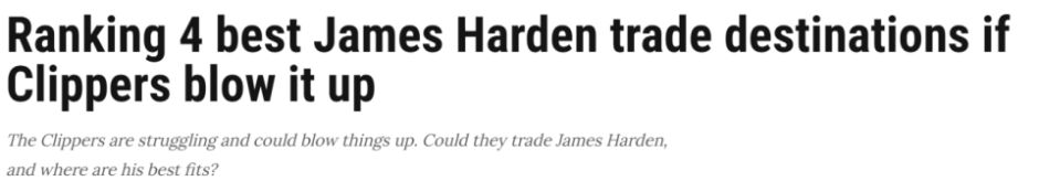 北京时间11月29日,快船队目前战绩惨淡,球队或许会在某个时间点选择彻底重建。他们有可能交易詹姆斯-哈登吗?而哈登又最适配哪些球队呢?美媒ClutchPoints列出了哈登的四大潜在下家,森林狼、开拓者、魔术、活塞在列。以下是相关分析——