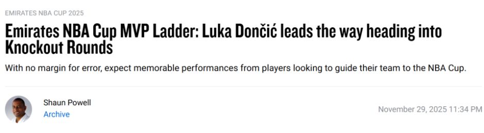 北京时间11月30日,随着NBA杯八强的产生,NBA官网也公布了杯赛MVP的排行榜。湖人两位球星进入前五,詹姆斯没有上榜。以下是具体排名——