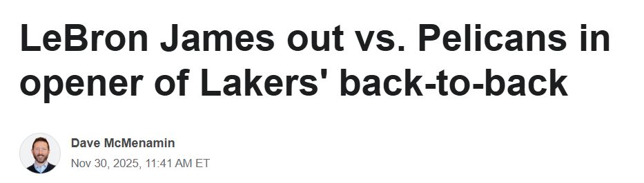 今日对鹈鹕的比赛,是湖人背靠背的首战,他们将于明日主场迎战太阳队。詹姆斯的长期好友兼经纪人、Klutch体育公司CEO里奇-保罗上周向ESPN透露,考虑到詹姆斯正征战创纪录的第23个NBA赛季,为保护其身体状态,他更倾向于让詹姆斯在背靠背的比赛中休息一场。