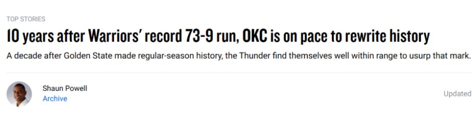 北京时间12月3日,雷霆客场124-112击败勇士,豪取13连胜,赛季至今21胜1负,继续领跑全联盟。关于雷霆的一个火热话题,就是他们能否打破勇士当年73胜的历史纪录?NBA官网也对此展开了分析——