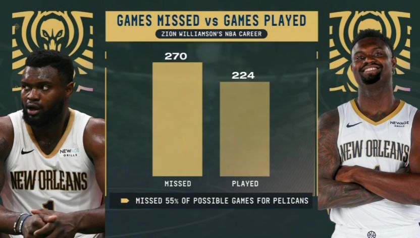 自2019年被选中以来,锡安已经缺席了鹈鹕队55%的可出战比赛,其中还包括2021-2022赛季的全部赛事。而本赛季,当锡安在场上时,鹈鹕的百回合净效率值能提升10分。