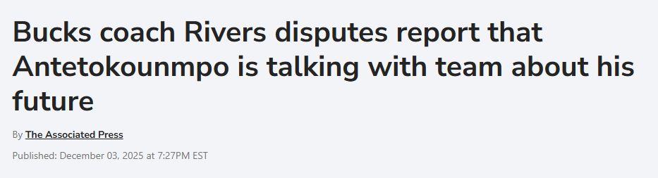 北京时间12月4日,雄鹿队主帅道格-里弗斯于周三表示,球队管理层与两届常规赛MVP字母哥之间,并未就其可能离队一事展开任何商谈。