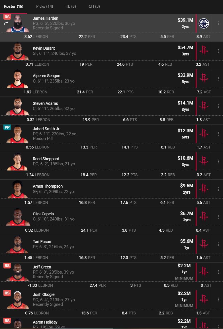 杜兰特、哈登、欧文三人曾在篮网队一同打球,但杜兰特、欧文连番遭遇伤病,哈登一人扛着球队走了很久,最终哈登被累到腹股沟拉伤,36岁的哈登依旧是一位场均27+8+6的全明星后卫,他是火箭目前最需要的一号位。