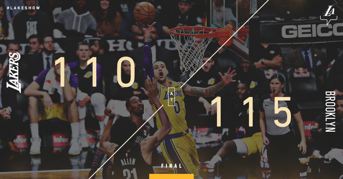 末节,杜德利上篮得手,分差一度又回到两位数。但湖人没有放弃,库兹马和球哥的三分继续为湖人续命,詹皇两次攻筐得手,个人得分来到30。进入最后5分钟的决胜时刻,球哥接到詹皇传球,用暴力劈扣终结进攻,库兹马的三分球还在命中,此时,湖人只落后2分了。最后1分15秒,比赛掀起高潮,球哥和詹皇三次强攻,帮湖人保留追分火种,无奈篮网这边,杜德利迎着詹皇防守,三分命中霸气十足,拉塞尔手起刀落三分弑旧主,更是彻底杀死悬念。最终,全场打完,湖人110-115不敌篮网,送给对手6连胜。