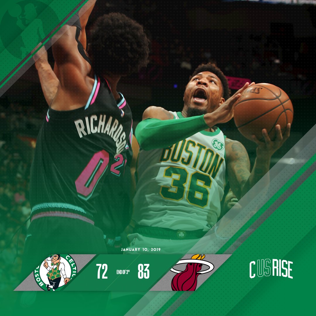 三节结束,热火主场83-72暂时领先凯尔特人。韦德上场15分钟,投篮10中6其中三分五中3得到15分1助攻。理查德森15分温斯洛13分黑带队长12分,白边9+10小琼斯九分。
