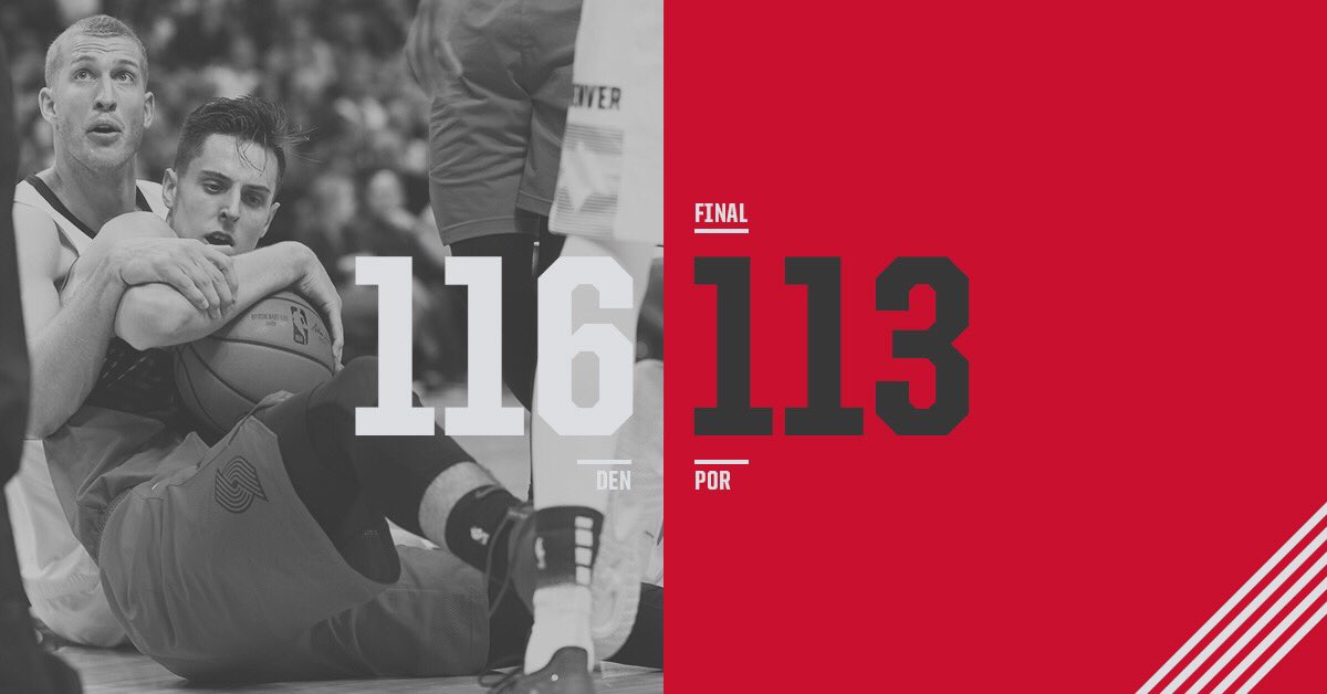 末节上来,开拓者打出6-0开局,迅速追上比分,暂停回来,莫里斯上进止血两分,两队再次陷入拉锯战,穆雷连拿五分,库里命中跳投,阿米奴两罚全中,两队再次战平,约基奇投进中距离,阿米奴篮下二次进攻打进,此后两队都无法得到轻松得分机会,只能靠罚球取分,米尔萨普补篮得手,约基奇连拿四分,麦科勒姆射进三分,穆雷关键抛投不中但自己抢下篮板,利拉德绝平三分不中。最终掘金主场116-113险胜开拓者,终结后者四连胜。
