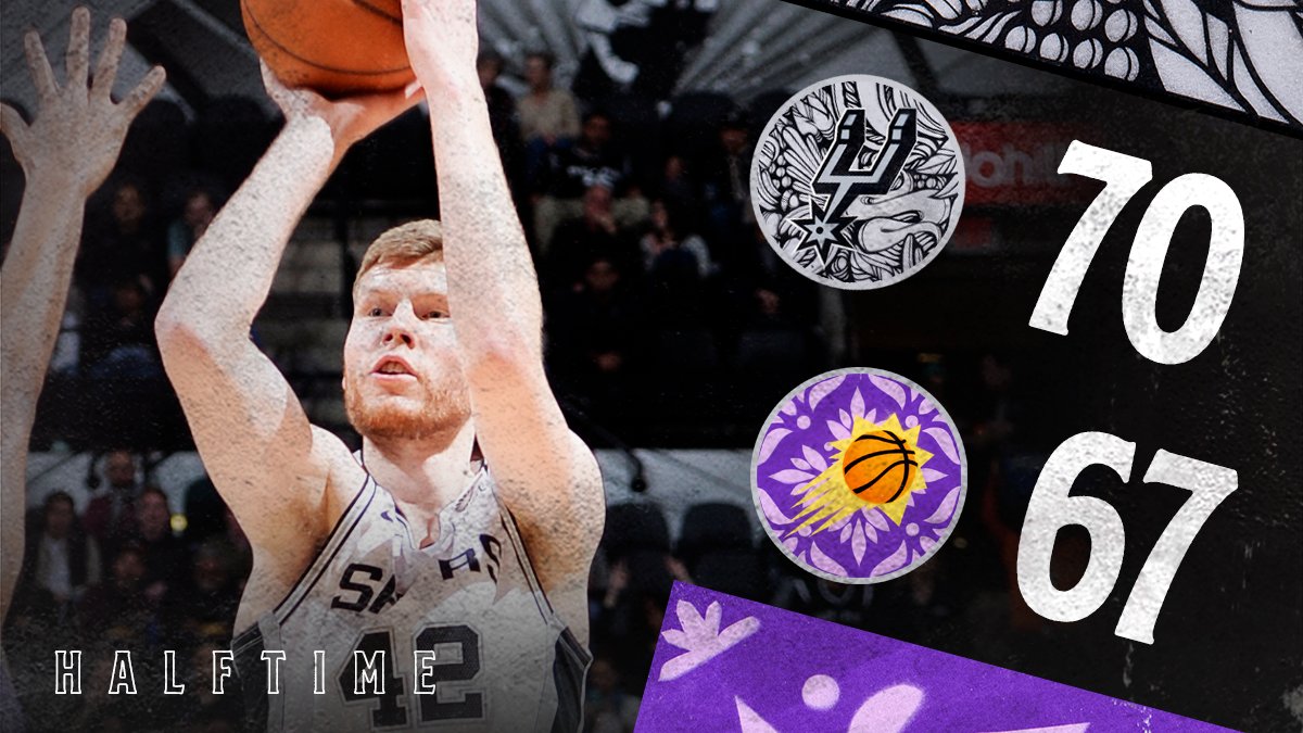 马刺VS太阳:阿德20+4+1布克18+3+4,马刺70-67太阳