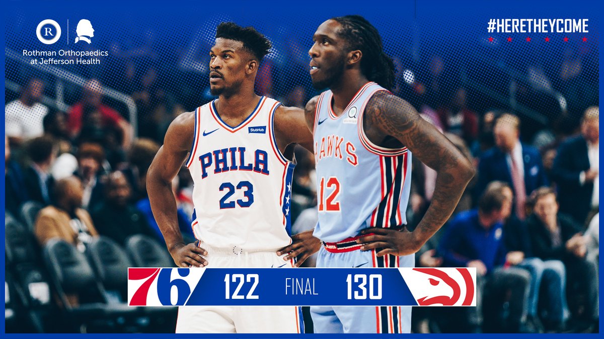 末节上来,斯科特篮下接球轻松得手,林恩射进弧顶三分,哈里斯借掩护命中急停跳投,西蒙斯压哨抛投得手,约翰逊篮下跟进补扣打进两分,西蒙斯突破上篮后不满判罚吃T,安德森再中三分后场上分差达到两位数,76人调整过后许尔特突破命中后仰两分,约翰逊跟进补篮得手,哈里斯三分线外造成犯规,科林斯篮下补进两分,雷迪克连续得分缩小分差,但糟糕的罚球使76人丧失机会。最终老鹰主场130-122力克76人。