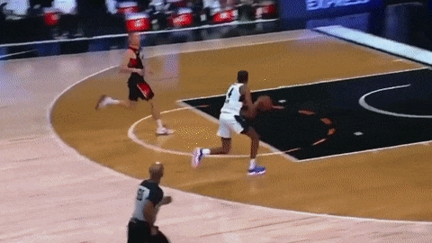 2、攻守转换中快速运球过半场,打对手一个防守立足未稳