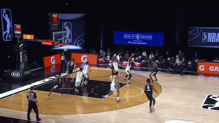 5、与队友挡拆配合,借挡拆后顺下完成上篮