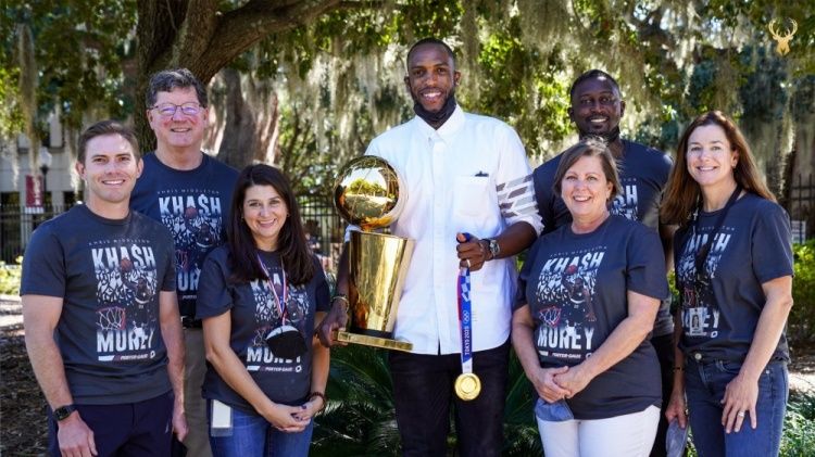 球迷屋9月25日讯,雄鹿官方更新个人社交媒体,晒出一组米德尔顿回到母校波特-高德高中的照片。 值得一提的是,米德尔顿总决赛场均得到24分6.3篮板5.3助攻,命中率49%。除了字母哥的稳定发挥,米德尔顿的关键能力也是雄鹿能够拿下总冠军的重要一环。