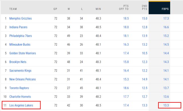 如果湖人的磨合足够顺利,他们的快攻得分有望明显提升,甚至冲击联盟榜首的位置。