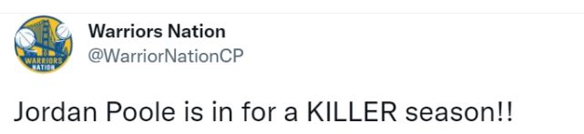普尔的出色表现,也引来勇士媒体的一片称赞。Warriors Nation写道:“乔丹-普尔开启一个杀手赛季!”warriorsworld写道:“不到一年前,这个来自G联赛的家伙还是沃纳梅克的替补。”Golden State of Mind写道:“我已经等不及看到库里、克莱和普尔一起出场了。”