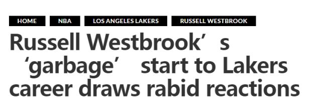 当然,在目睹威少的这种表现后,评论家和篮球爱好者很快就嘲笑湖人,毕竟在休赛期收购威少,以组建新的“三巨头”之后,围绕着球队的炒作太多了。