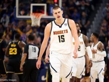 4月28日。丹佛·那盖茨的尼古拉·尤基奇在与金泰特·华里兹的系列第5战中留下了30分19篮板球8辅助2块,战斗到底。